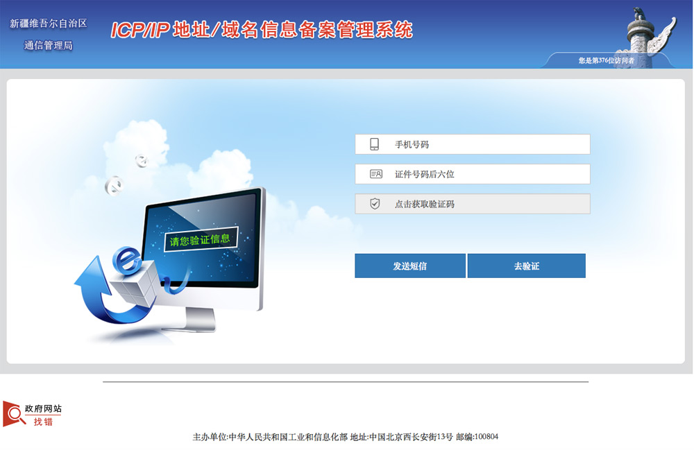 需驗(yàn)證的手機(jī)號(hào)碼收到工信部發(fā)出的驗(yàn)證碼短信后,請(qǐng)及時(shí)登錄備案省市管局網(wǎng)站,完成短信驗(yàn)證。